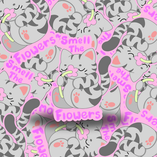Smell the Flowers Cat Sticker